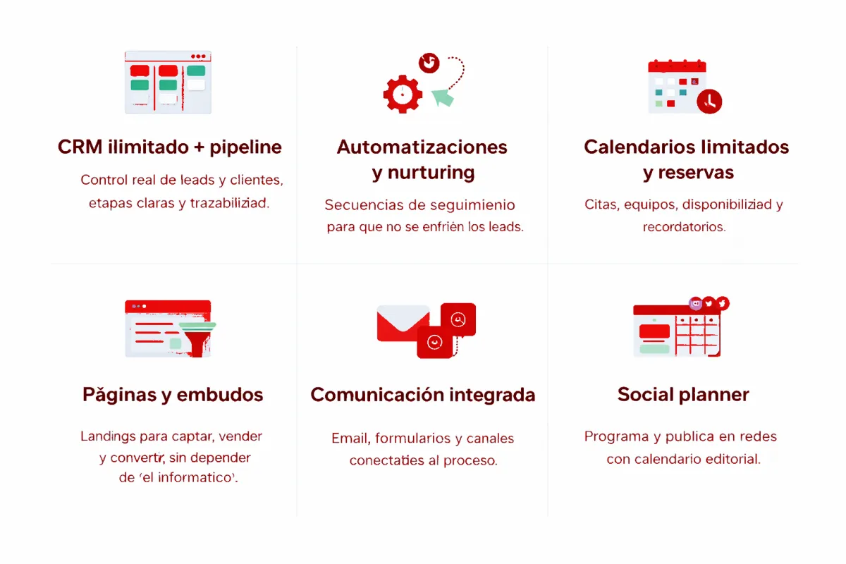 La mayoría de agencias operan con herramientas sueltas: WhatsApp, emails, notas, Excel, un CRM a medias… y el negocio depende de memoria, prisas y “luego lo miro”.