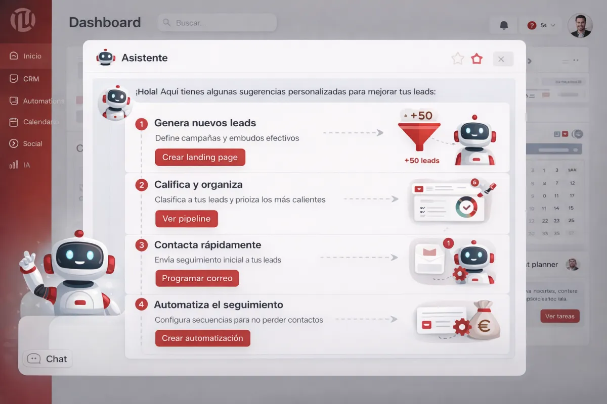 Con IA aplicada, automatización real y control total para que tu agencia deje de improvisar.